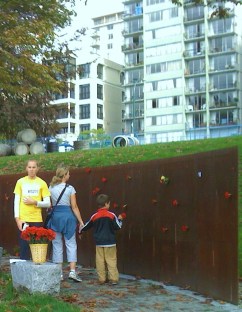 This year, though, I was on my own.  My parents were on vacation in the Maritimes with friends and this was the only time that worked for everyone.  The route of the Walk changed this year, too, and is much shorter.  The Walk now runs up the sidewalk from Sunset Beach almost to English Bay, then sharply turns onto the seawall running in the opposite direction.  The route was so short that there wasn’t time for everyone to pass me.  I was in the middle of the pack for the entire walk and even got to hear the Vancouver Men’s Chorus perform.  They were set up near the AIDS Memorial, which was filling up with red carnations as each group of Walkers passed.  My uncle’s name is not there, but that doesn’t matter; it’s a good place for remembrance.