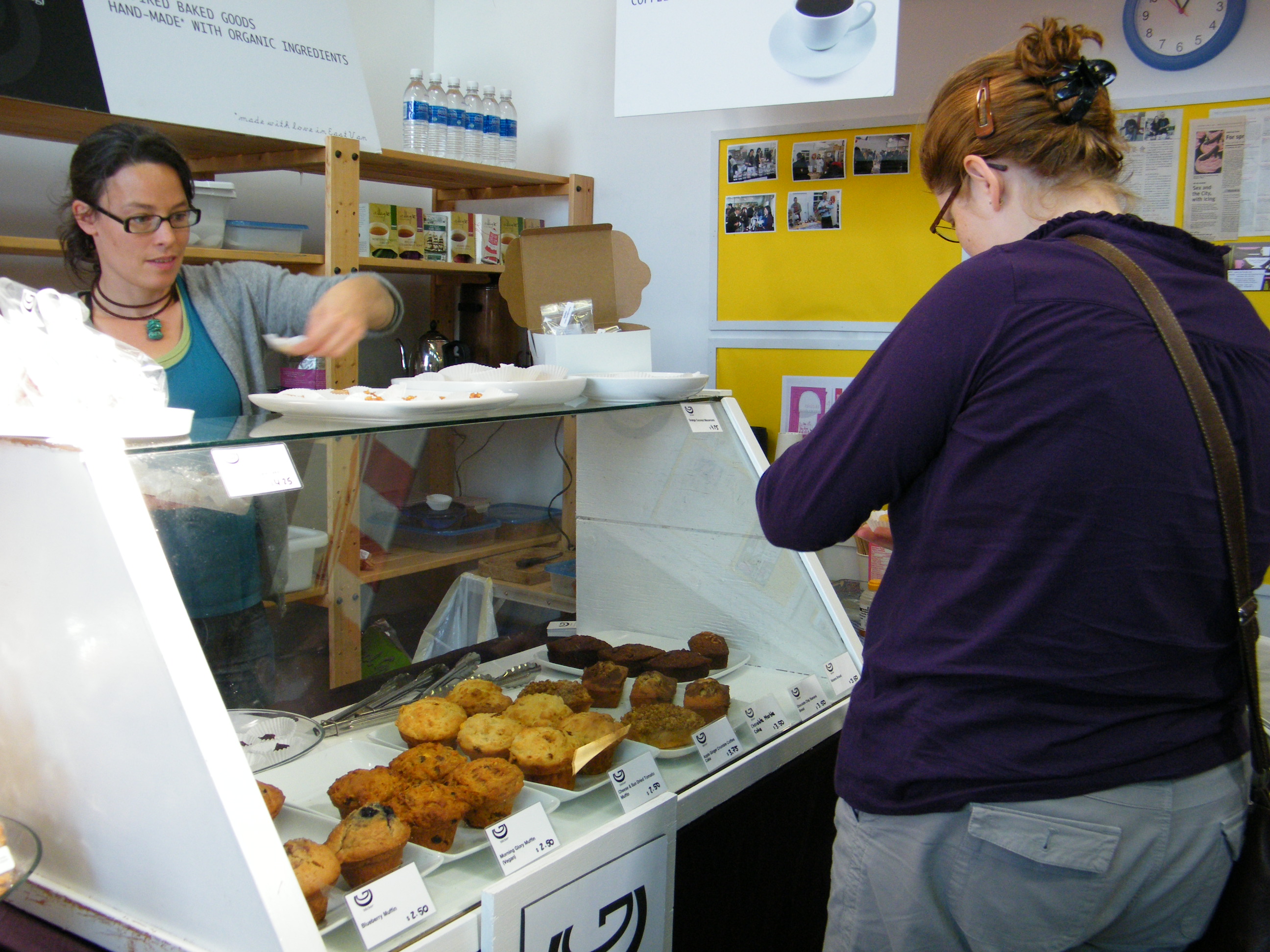 I went home with ginger-marzipan cookies from Chef Kev, a mint chocolate vegan cupcake from Sweet Delights, an apple loaf from bäcker, tartlettes from sweetypie and some (unfortunately crushed) macarons from another vendor. I would have loved to bring home more. Next time, I’m going to go earlier. And although I appreciated my contemplative bus ride, I think I’ll book a co-op car.