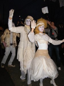 The Parade of Lost Souls has been a yearly fixture in my neighbourhood since the mid-90’s. Public Dreams Society created an event that mixed Mexican Day of the Dead traditions with Celtic Samhain rituals, throwing in Hallowe’en costumes and a circus aesthetic for good measure. In the beginning, it was almost a neighbourhood secret, with artists and queers, students and stilt walkers proclaiming our difference from the rest of the city. In those days, the Drive was the also the home of Vancouver’s Fringe Festival and the Illuminares Lantern Festival (another Public Dreams project). Commercial Drive felt like the seat of countercultural expression, even as we realized that we were really just the harbingers of gentrification. Still, it was exciting to wind our way around the neighbourhood, with decked out houses and alleyways, knowing that new ways of making art (and old ways rediscovered) were being worked out in front of us.