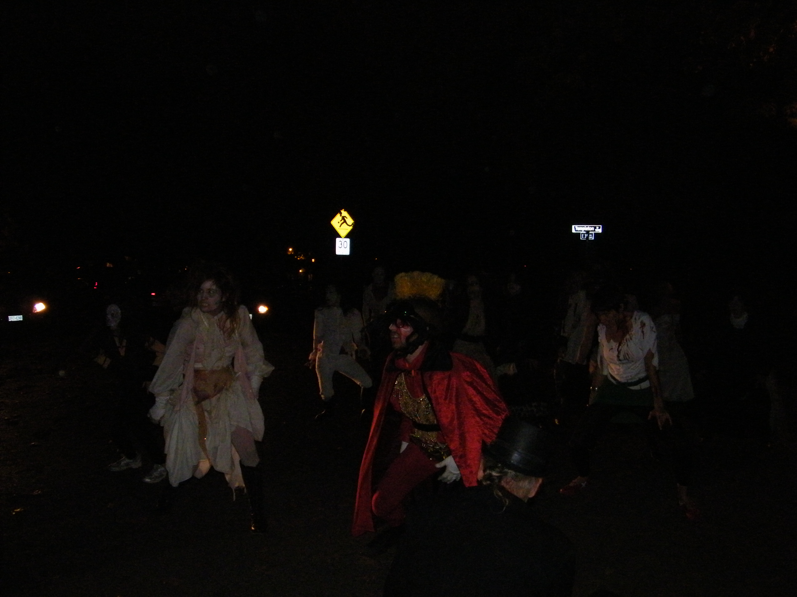 My partner and I went on the walk together, which wound through the alleyways above McSpadden Park. There was a carnival atmosphere present, as there has been during past walks, but it was more subdued. We had to go looking for smaller spectacles, rather than being hurtled past larger ones. I really liked this aspect of Secret Souls. Some of the highlights for me: Thriller zombies at Templeton & East 3rd, the court of Queen Victoria, the still, pale ghosts in the alley and the music of various performers wafting across the neighbourhood.