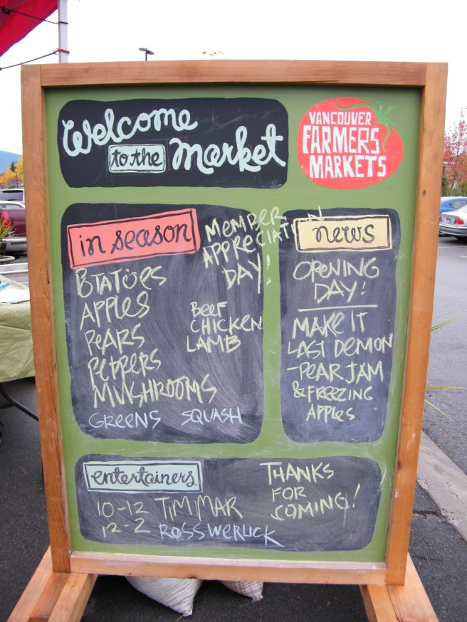 This past Saturday, the Vancouver Farmers’ Market had their first winter market of the season. It was a bittersweet occasion for me, because until this year the winter market was almost literally a stone’s throw away from where I live. (If I had a better arm, it would have been.) But, the market had long outgrown its winter home at the WISE Hall and this year the city gave permission for the move to the parking lot at Nat Bailey Stadium.