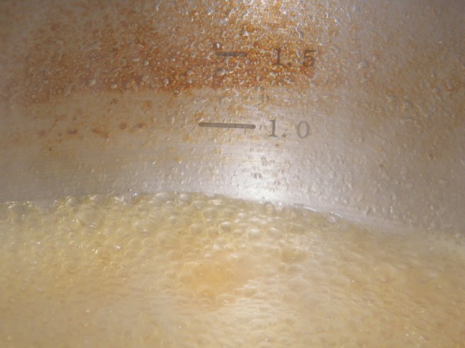 In this French take on a traditional Moroccan dish, chicken is marinated in spices, then simmered in broth until very tender. The broth is cooked down into a rich sauce, made even richer by adding eggs and honey. Finally, everything is combined, put into a phyllo pastry crust and baked. Since my partner would be eating this with me, I substituted gluten-free rough puff pastry for the phyllo, using Gluten-Free Girl’s recipe (which you can find here). I’d researched gluten-free phyllo pastry, but didn’t find a recipe I trusted. I need to do a little more exploration and some test batches, I suppose. I recommend this puff pastry recipe wholeheartedly – it comes together like magic, though you’ll likely have sore biceps the next day.