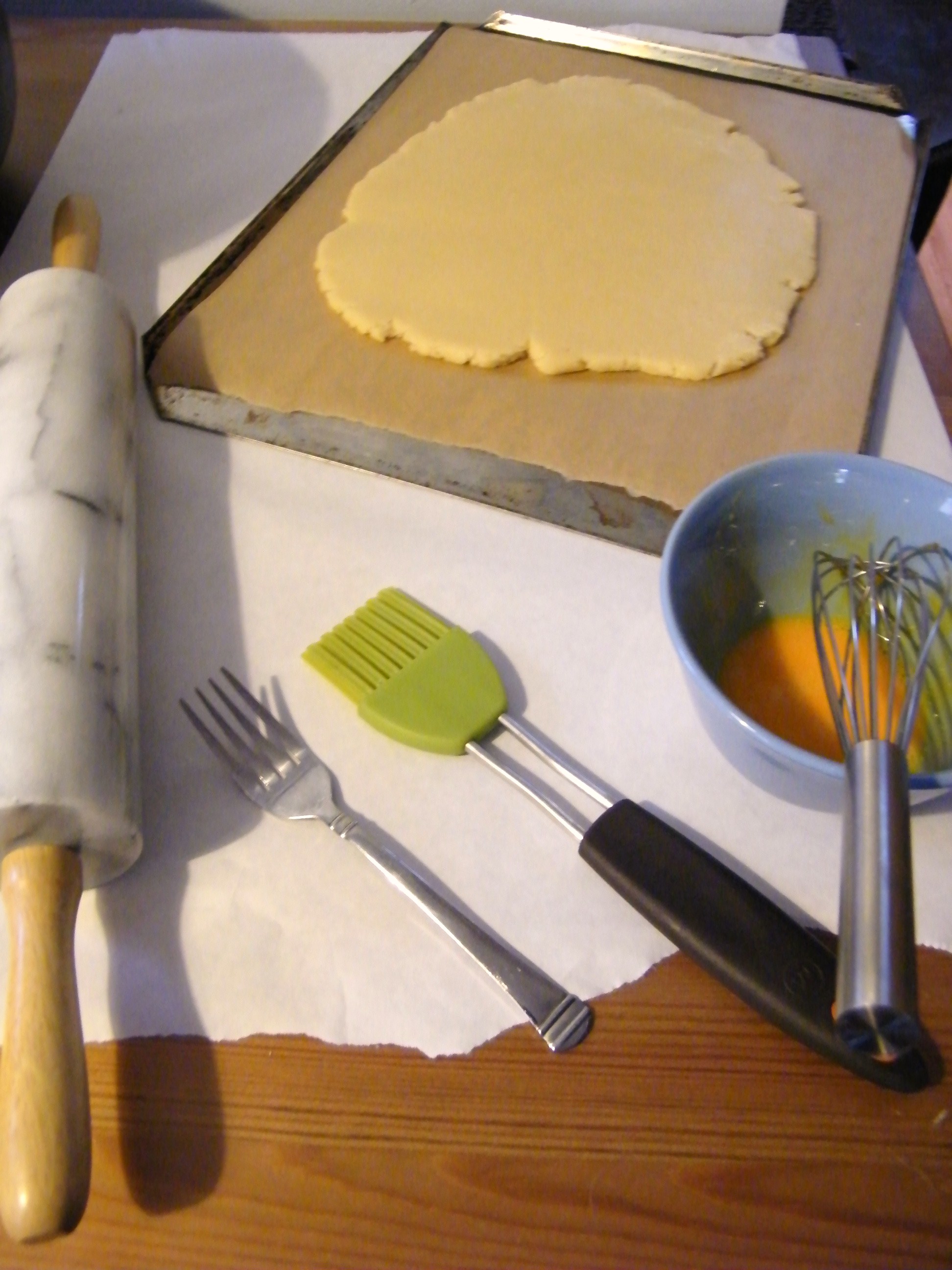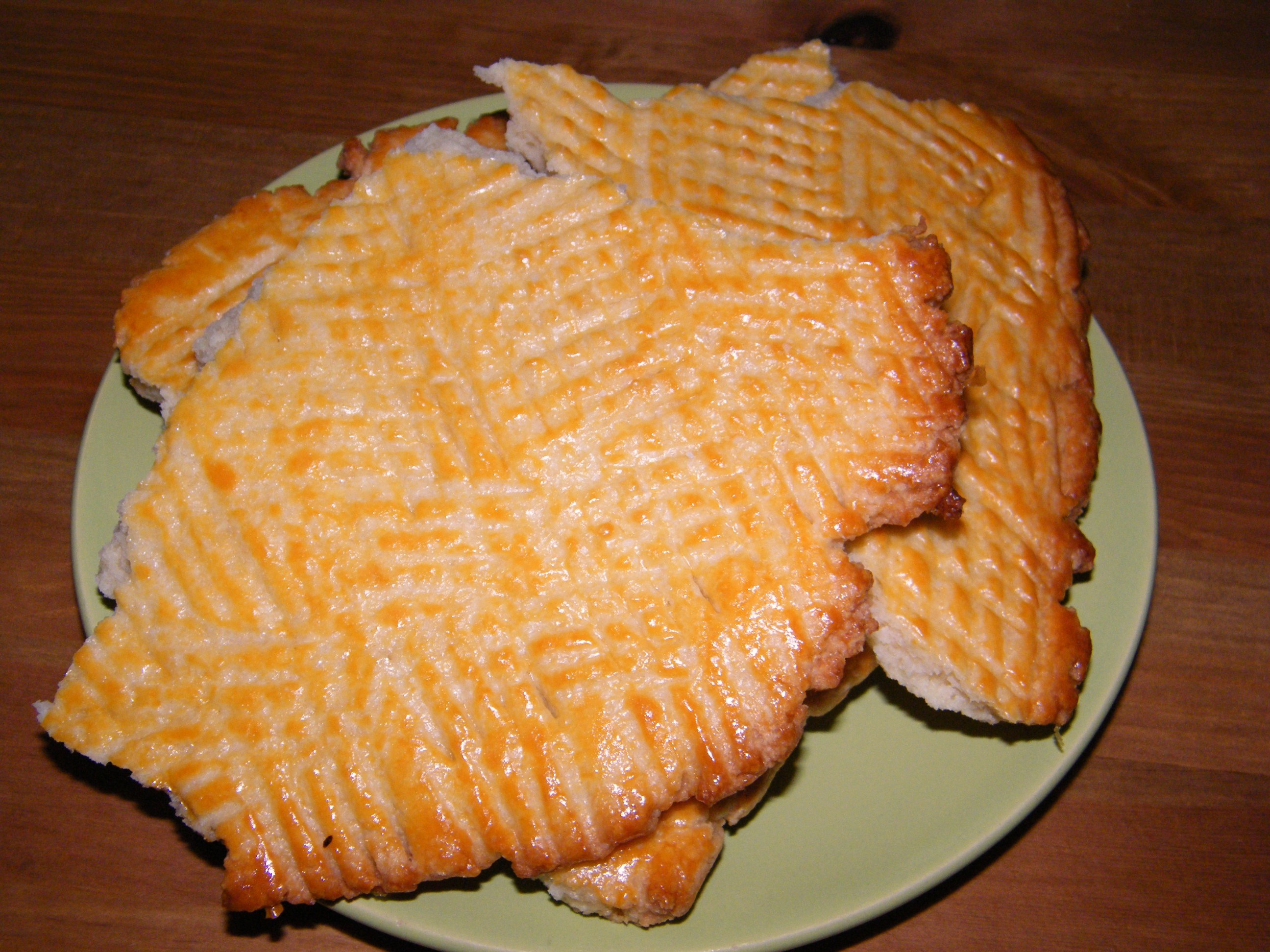 The break-ups are baked in one large, rolled out piece, given an egg wash and then decorated with a criss-cross pattern, using a fork. Once it’s been baked and has cooled to room temperature, it’s served intact, with guests breaking off pieces to serve themselves. I’ve yet to serve it this way, though. I’ve broken them up myself and packed them into cookie tins or paper sacks – much easier to transport.