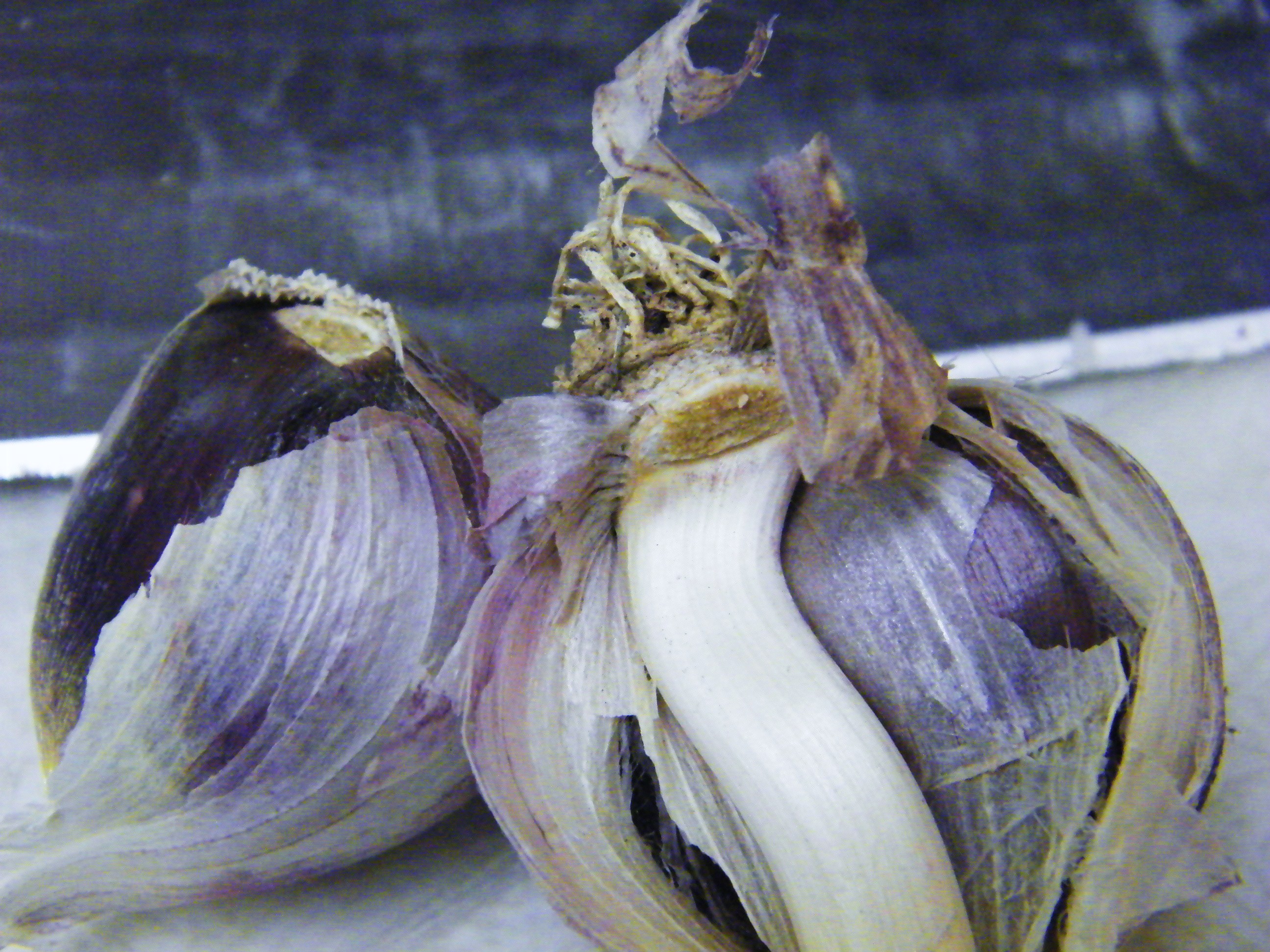 Garlic from my Dad's garden, all purple and white.