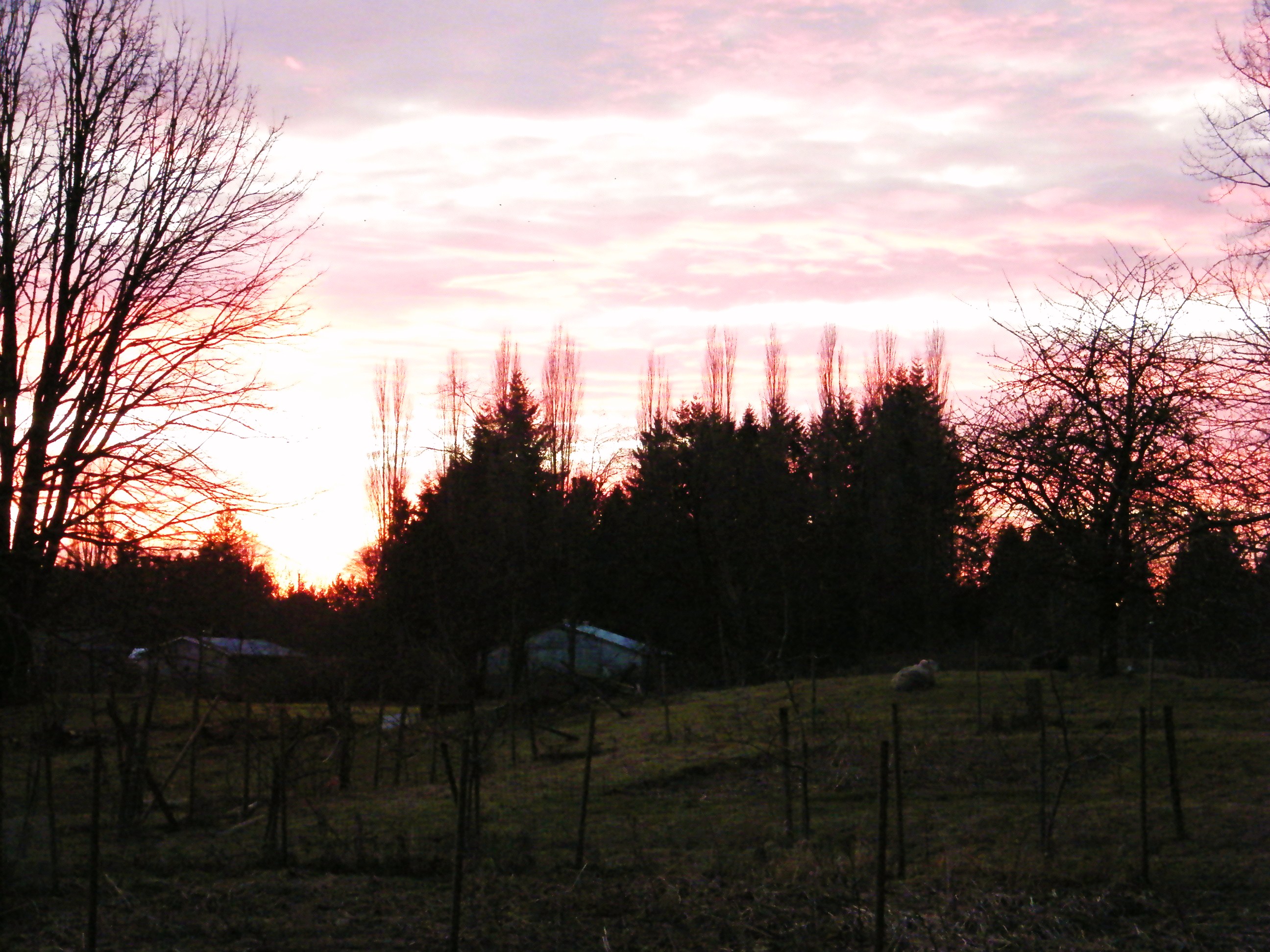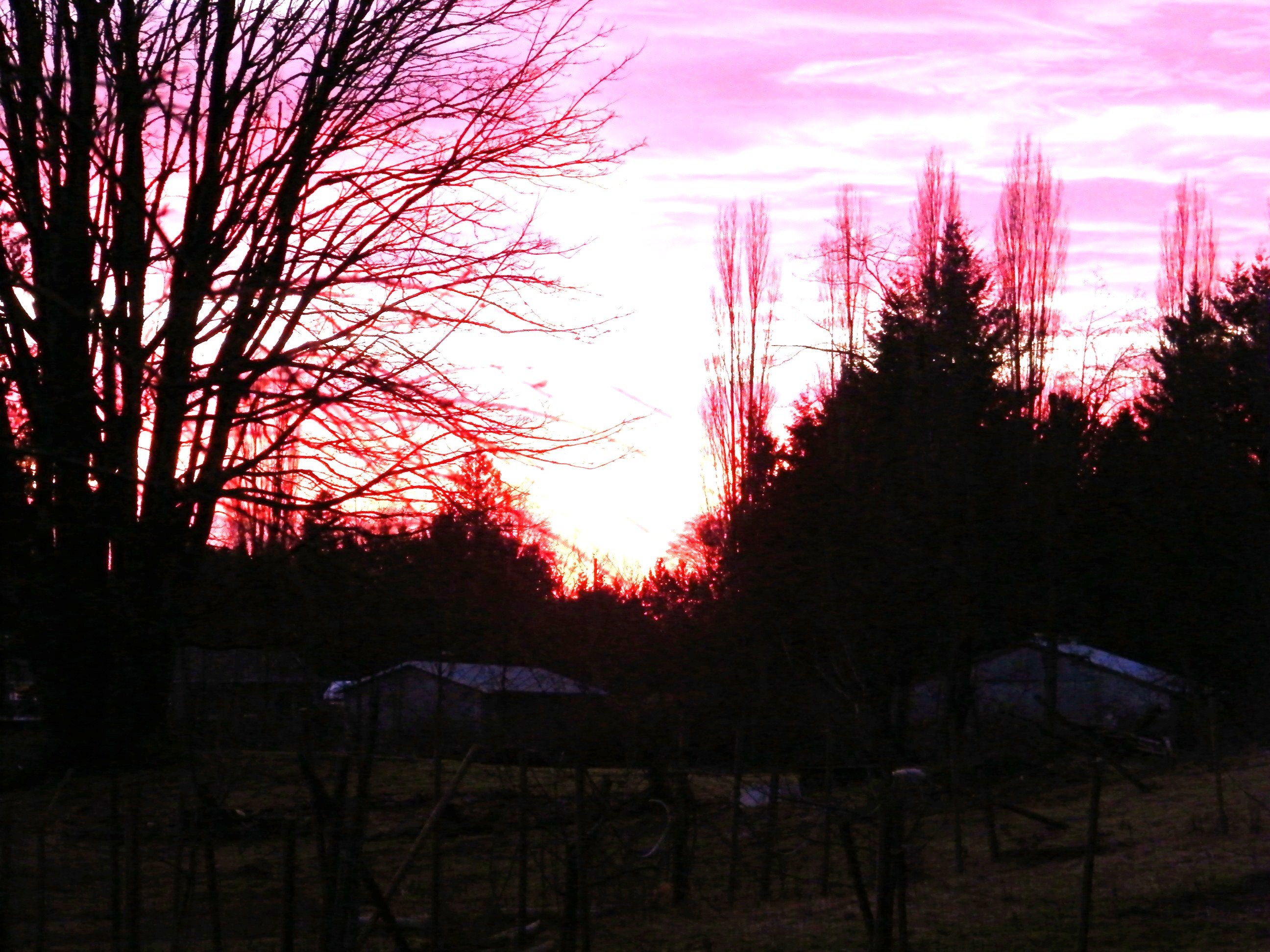 I’m something of a slacker today. I’m nearly better from a flu that’s had its way with almost everyone in my extended family, so I’m just posting a few photos I took recently. Sunsets are beautiful out at the farm. These photos would have benefited from the use of a tripod, but I still like them.