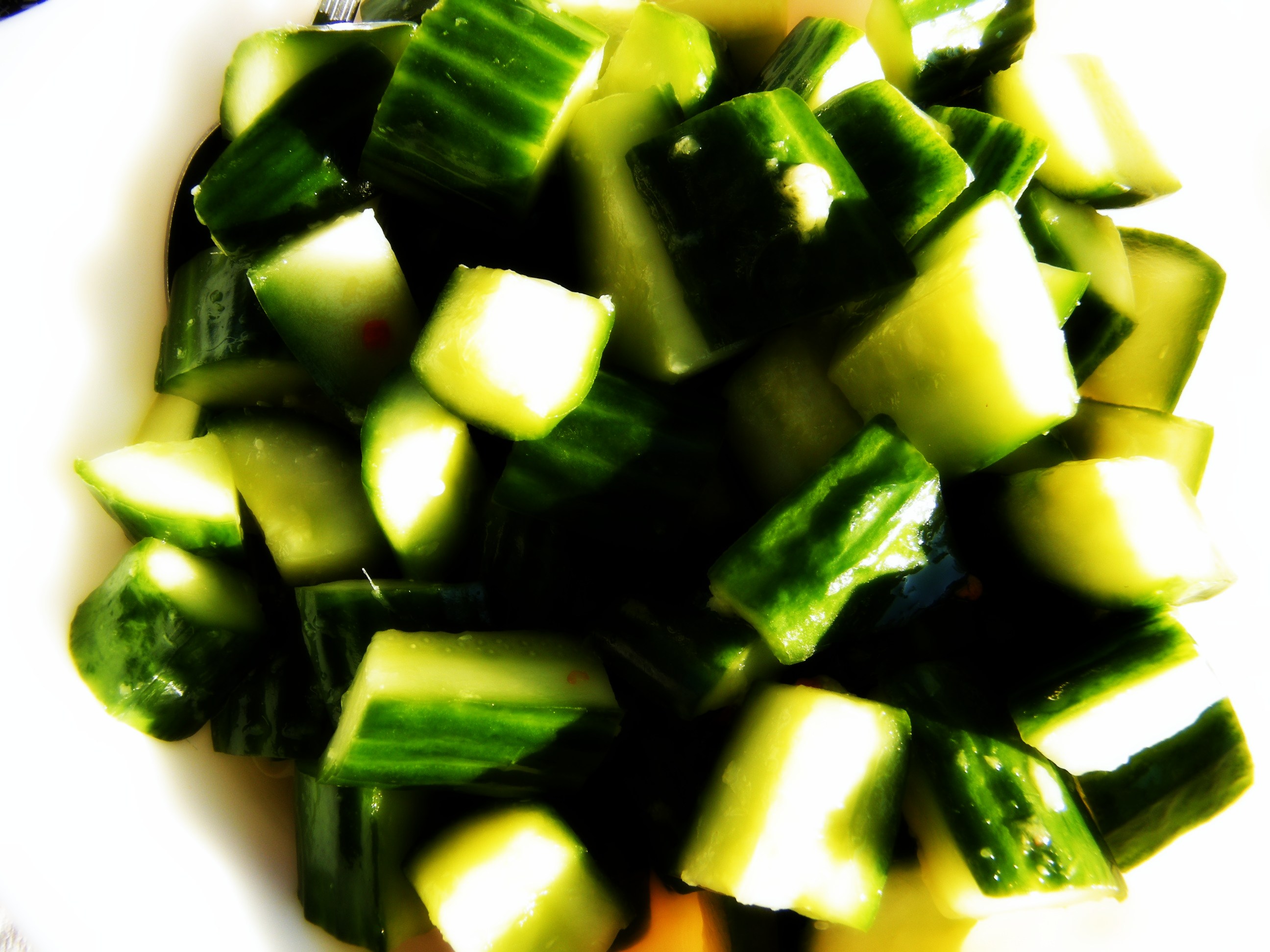 Last up is a salad so simple that my brother exclaimed, “Oh look, Teresa chopped up a few cucumbers and called it a salad!” It was my contribution to the barbeque feast in celebration of my nephew’s high school graduation, and I was quick to tell him that there was a little more to the salad than cucumbers. I didn’t bother mentioning how easy it was to put together. After the cucumbers hang out in some sea salt for a while, they’re tossed with fresh ginger, seasoned rice vinegar, and red pepper flakes and left to stew in their juices in the refrigerator. Luckily, they’re delicious, so I didn’t get any more teasing for the (lack of) effort my contribution to dinner entailed.