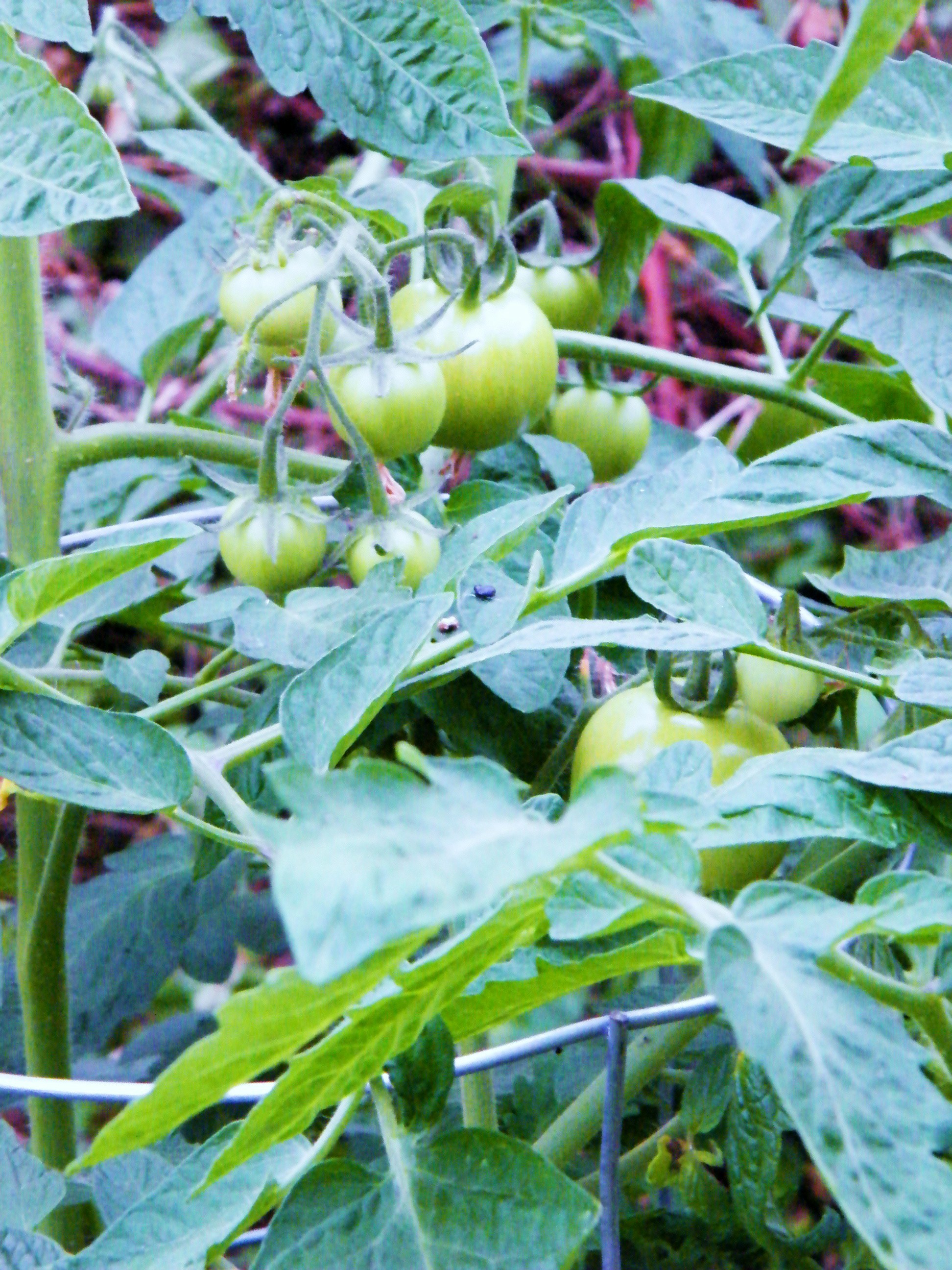Holy thunderstorm, Batman! It’s hard to believe that just yesterday (and this morning, for that matter), it was sunny. I’m hoping things don’t get too exciting out there – my eggplant and most of my tomatoes are quite little and fragile at the moment. I think my beans could survive just about anything, though. The photos I’m sharing aren’t the best I’ve ever taken, but they show how things are coming along.