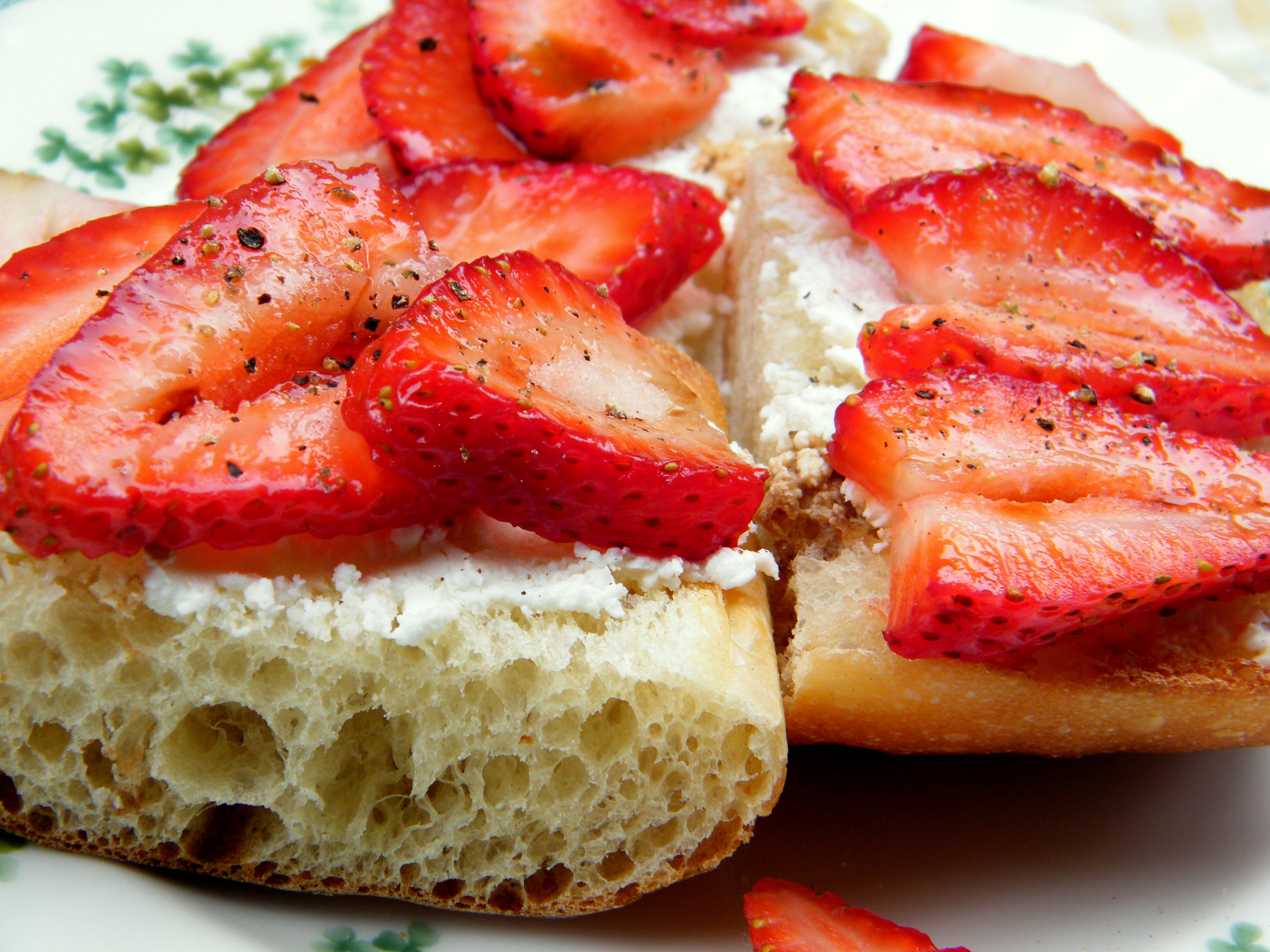 Enter a little reminder that a satisfying, elegant breakfast need not be complicated – this week’s French Fridays dish is a simple tartine. Toasted chunks of baguette slathered with goat cheese, then topped with some sliced strawberries, a little balsamic, and a dusting of fresh pepper. Enough to satisfy mid-morning hunger and wake up the senses.