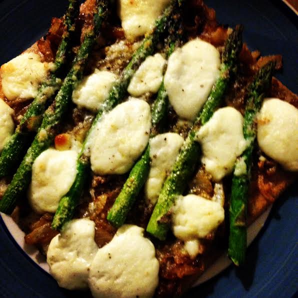 I didn’t get a pretty photo of this one, but I loved it, ugly or not. I used a frozen gluten-free crust instead of the homemade pizza dough made with Hugh Fearnley-Whittingstall’s Magic Bread Dough. Next time, I’ll make it for gluten-eaters and use the dough, as Kevin wasn’t that keen on this dish. He would have preferred a traditional, tomato-based pizza with steamed asparagus on the side.