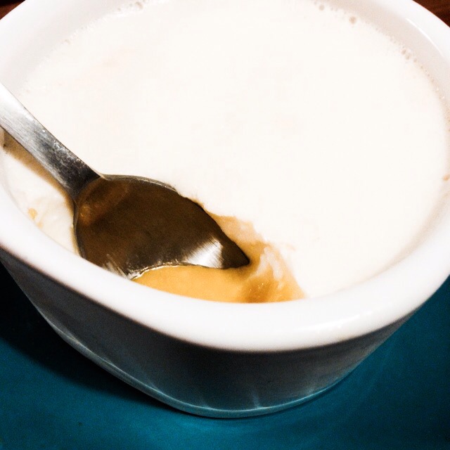 I love my ramekins – they’re pretty and they’ve served me well. But, they’re totally wrong for presenting this dessert. It’s meant to be admired even before you spoon into it. I probably don’t need more ramekins, so next time I make this, I’ll unmold the panna cotta onto a plate and garnish it with a generous amount of the purée. Or, I could go shopping, ignoring the fact that I live in a small apartment and I have a very long wish list of kitchen items.