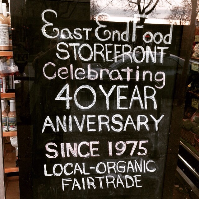 Our first stop for groceries is always East End Food Co-op. They concentrate on organic and fair trade products as much as they can, while also trying to support local farmers in the produce aisle.