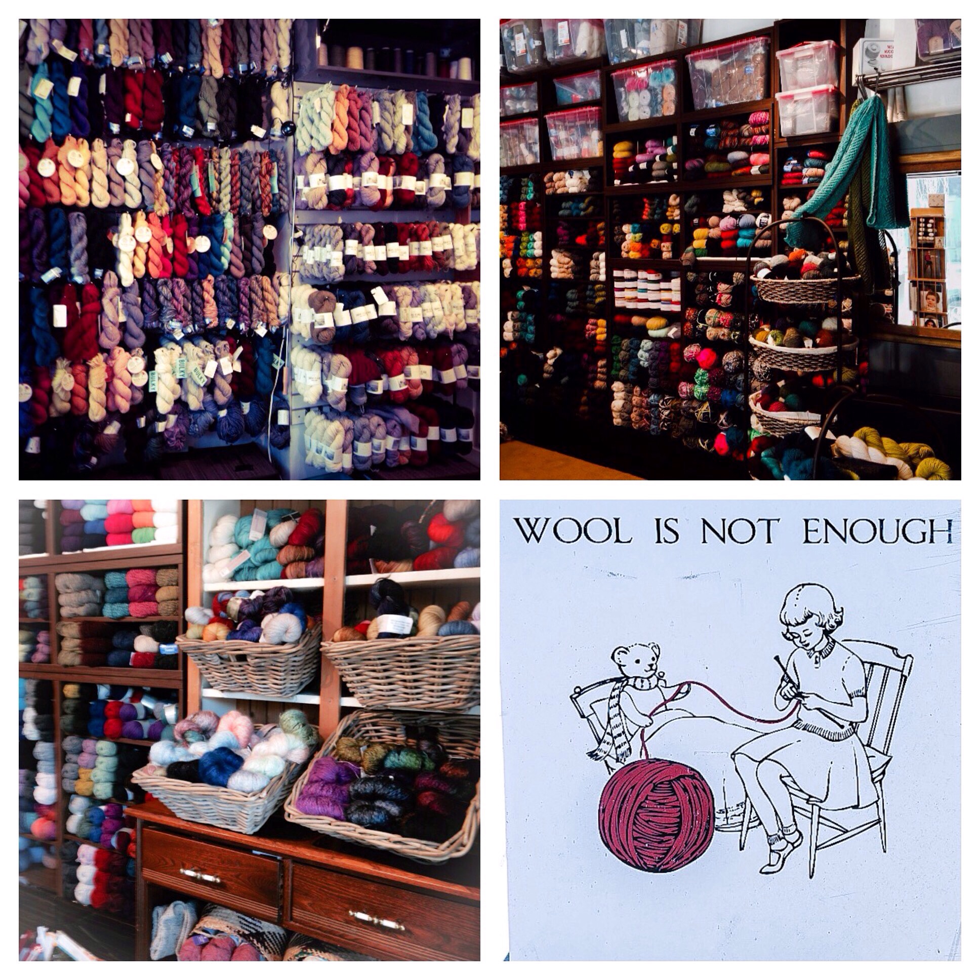 There are two yarn stores in the neighbourhood, which makes me happy: Baaad Anna’s and Wool Is Not Enough. I’m on a yarn diet, but I know if I want to break that fast I can find what I need at one or the other of these stores. You’ll want to visit both, because they stock quite different (but equally fine) yarns.