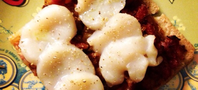 If I were to make this again, I’d leave the scallops off the tart and sear them instead, serving them on greens alongside. I think they would shine more than they did here and it would make a complete meal.